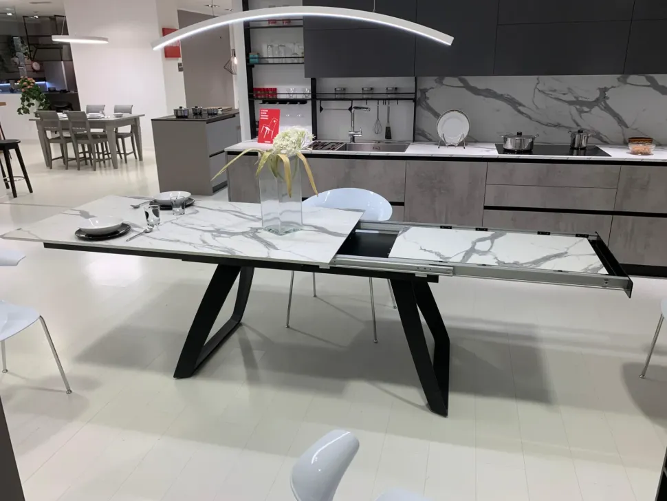 Tavolo Barret con struttura in metallo nero, piano in HPL finto marmo, n.2 allunghe interne da cm 50 sempre in HPL in tinta