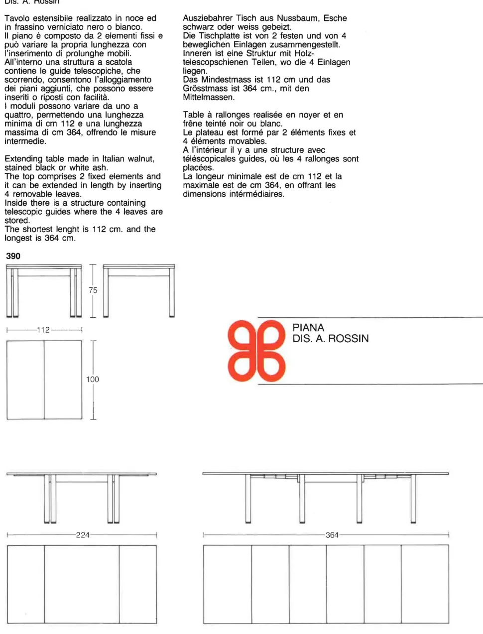 dimensioni chiuso L.100 x 112 cm allungabile fino a 364 cm