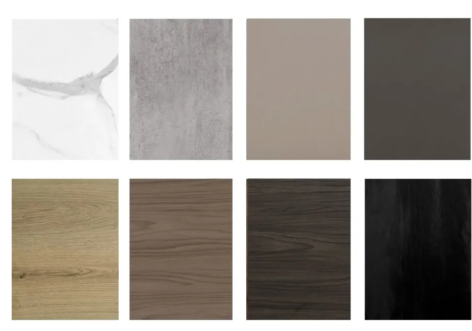 bianco opaco, grigio tortora, grigio ardesia,cemento