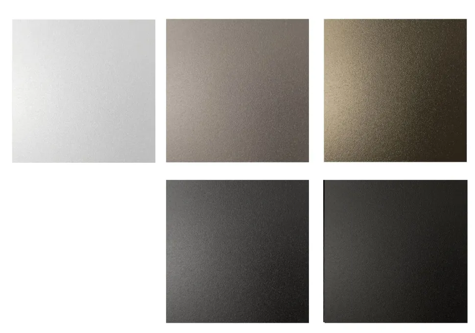 bianco, grigio tortora, grigio antracite, nero, bronzo