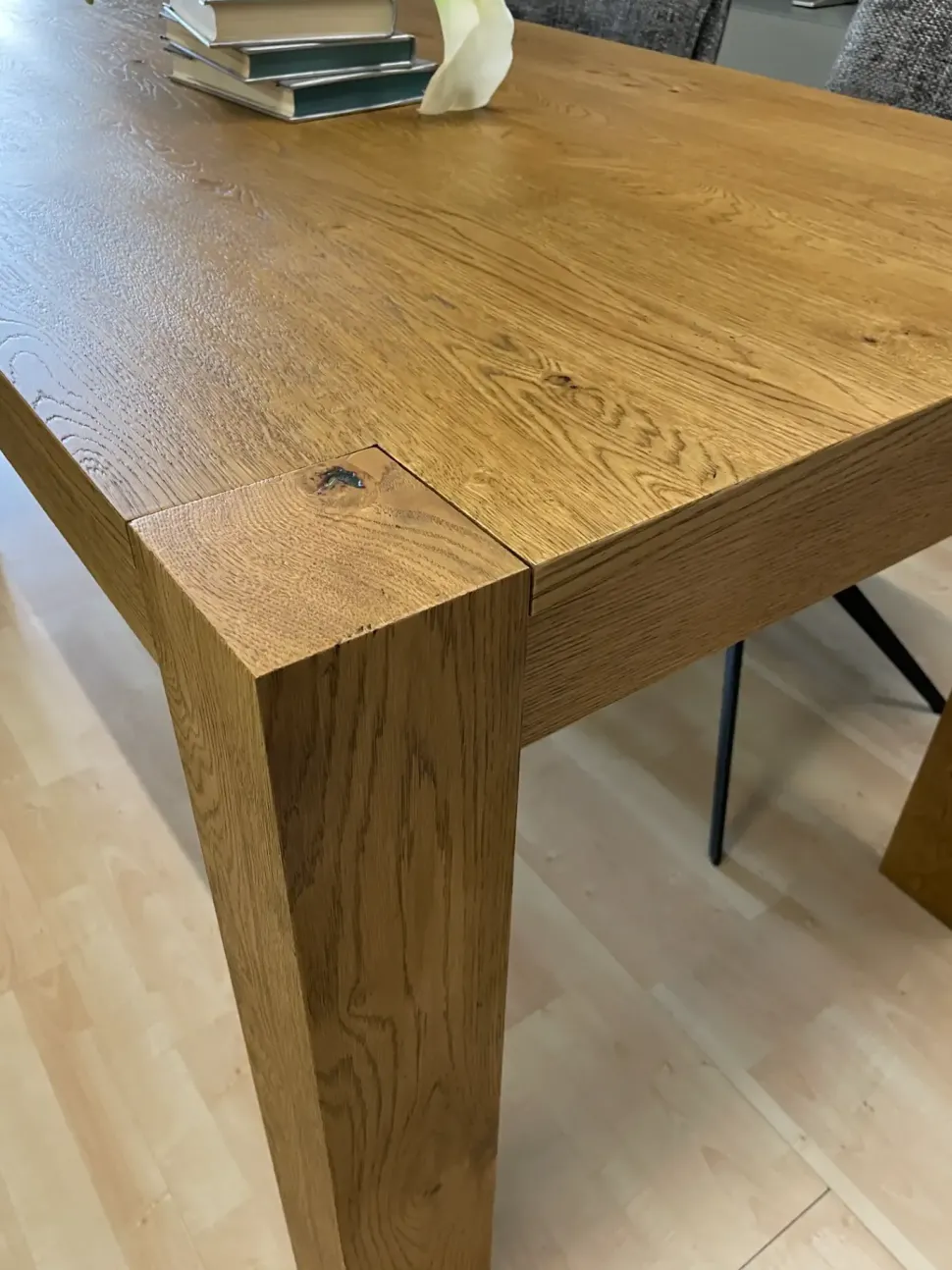tavolo artigianale in rovere nodato impiallaciato 160×90 allungabile fino a 260 cm con 2 allunghe da 50 cm