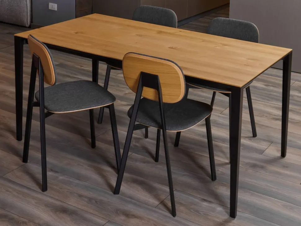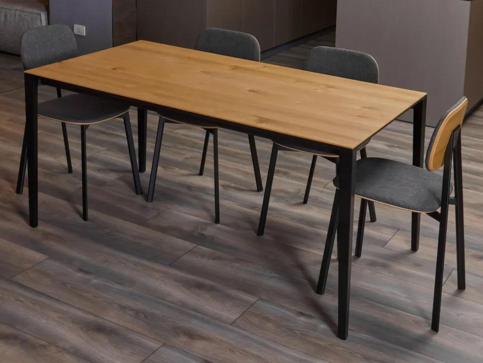 Hiroshi outlet è un tavolo allungabile da cucina o soggiorno proposto nel formato rettangolare da cm 160; le allunghe telescopiche sono nascoste sotto al piano e le gambe perimetrali garantiscono la massima praticità e comodità dei commensali.