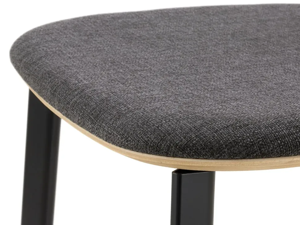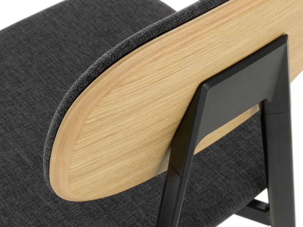 – sedia Lollipop: seduta e schienale in tessuto Flash col. F602 / retroschienale in legno essenza Rovere Naturale / struttura in metallo verniciato Nero opaco