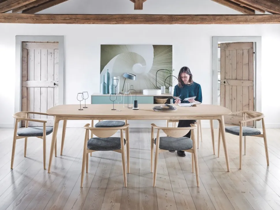 Linee fluide e attenzione ai dettagli caratterizzano il tavolo fisso Hanami, disegnato da Matteo Zorzenoni per Novamobili. Un tavolo che si distingue per la scelta dei materiali di altissima qualità e la forma sagomata del piano che conferiscono un aspetto moderno e ricercato. Si contraddistingue per l’esclusiva forma delle gambe in legno massello inclinate e rastremate verso il pavimento che donano dinamismo e leggerezza rendendolo il protagonista assoluto del tuo arredo. Hanami è un complemento d’arredo dal design fluido che richiama lo stile scandinavo. Perfettamente adattabile a diversi stili d’arredo, dona una sensazione di calore ed ospitalità alla tua cucina, dining o soggiorno.