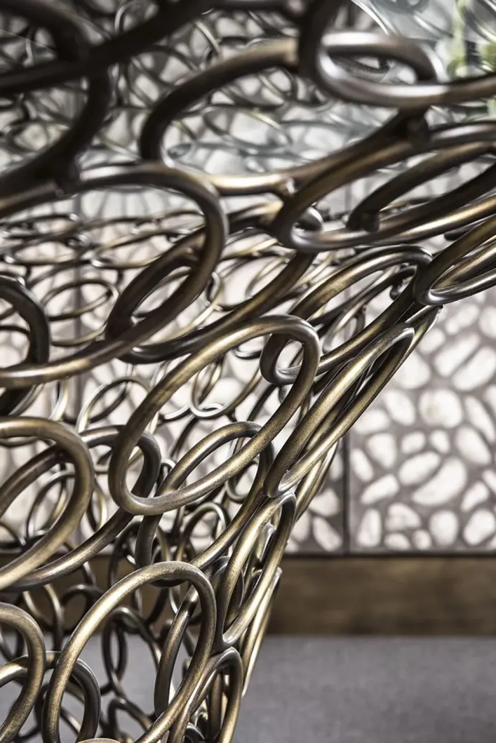 Attraverso un lento processo di precisione, studiato appositamente, i cerchi metallici diventano la base del tavolo.