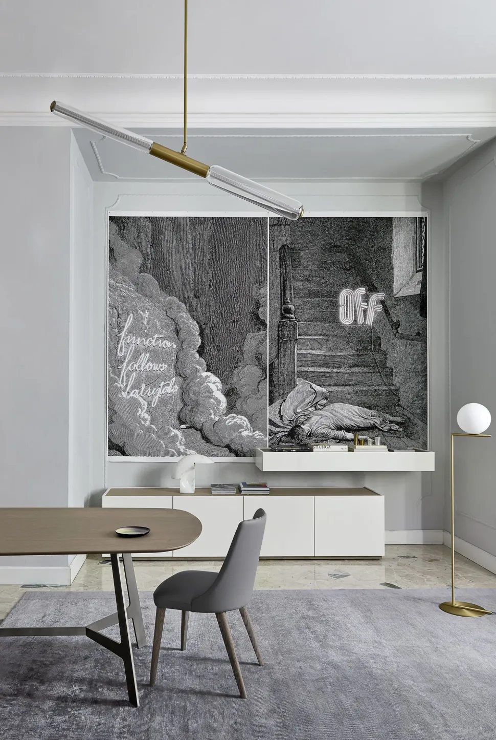 - I pezzi di arredo non devono mai essere ingombranti, prima di tutto per quanto riguarda lo spazio che occupano secondo la disposizione degli ambienti; per cui è tanto importante valutare attentamente anche le dimensioni del tuo tavolo: il modello Fisso Vertigo visibile in foto ha una lunghezza che va oltre 221 cm ed è perciò ideale per un luogo di molteplici volumetrie.