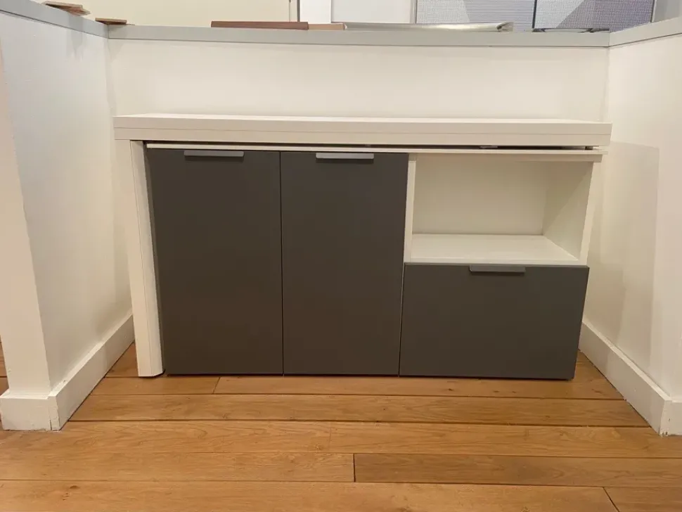 PROMOZIONE SUL NUOVO SU TUTTA LA COLLEZIONE CLEI PER APERTURA NUOVO PUNTO VENDITA L’ESEMPIO DI PREZZO E’ DATO DAL TAVOLO MODELLO GIRO’ 1345′ CON 2 ANTE + CESTO A TERRA ,IN MISURA DI CM 134,5 X PROF. CM 35 PROFONDITA ‘ CON APERTO IL TAVOLO CM 162 , LUNGHEZZA EFFETTIVA DEL TAVOLO CM 134,5 X PROF. CM 68 IL PREZZO E’ DATO IN FINITURA BASICA MELAMINICO BIANCO SIAMO RIVENDITORI CLEI A LISSONE E SPEDIAMO IN TUTTA ITALIA E OLTRE.