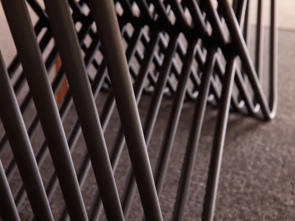 Il piano, realizzato nella pregiata e delicata finitura Fior di Pesco, conferisce al tavolo un’eleganza raffinata e senza tempo. La struttura del basamento leggera e dinamica, aggiunge personalità e stile all’ambiente living, grazie al suggestivo intreccio metallico che ne valorizza il design contemporaneo.