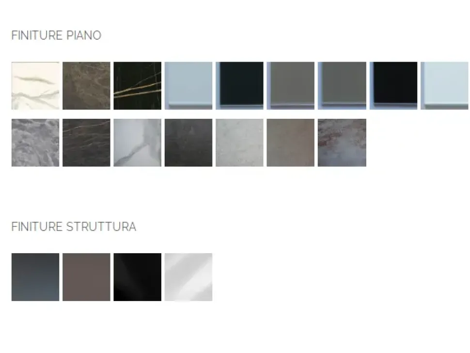 Piano in cristallo, vetro stratificato ceramica o Marble Glass, allunga centrale in nobilitato.