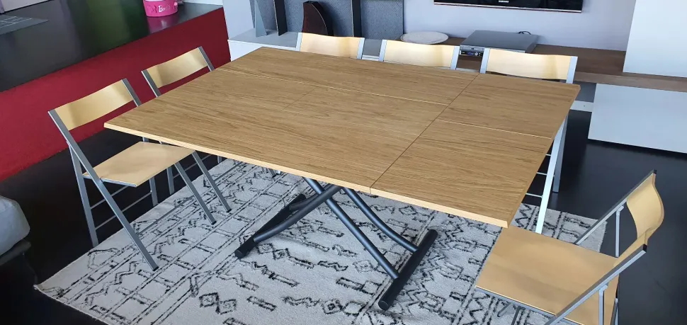 Il piano è allargabile così da creare a capo tavola lo spazio necessario per collocare ben 4 posti a differenza dei tavoli comuni che hanno solo un posto