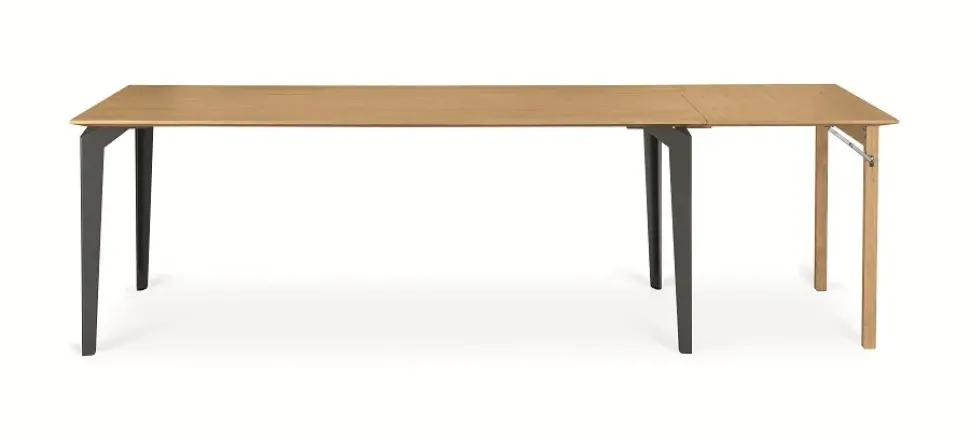 TAVOLO MODERNO FISSO + allunghe optional – realizzato con 100% legno massiccio. Piano spessore 2025mm Vero Legno Massello. Finitura Liscia. Gambe in metallo verniciato colore Antracite epossidico..
