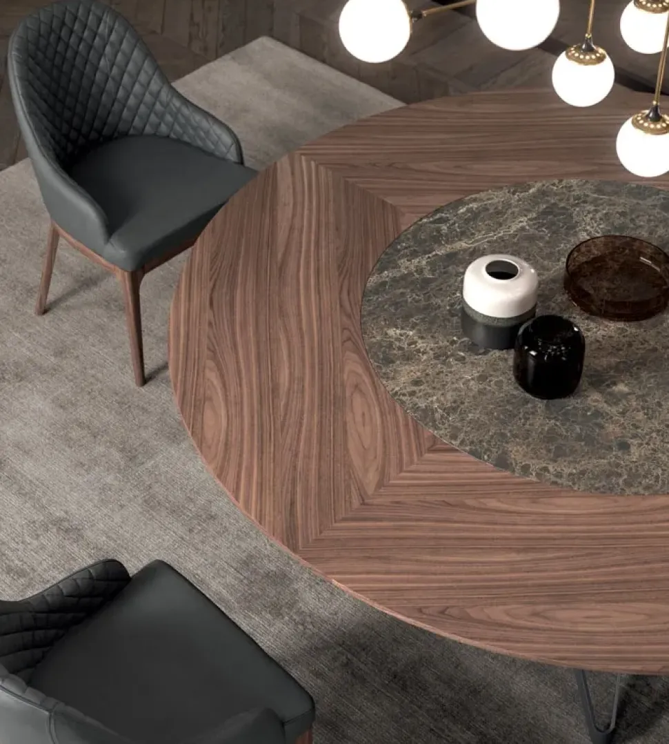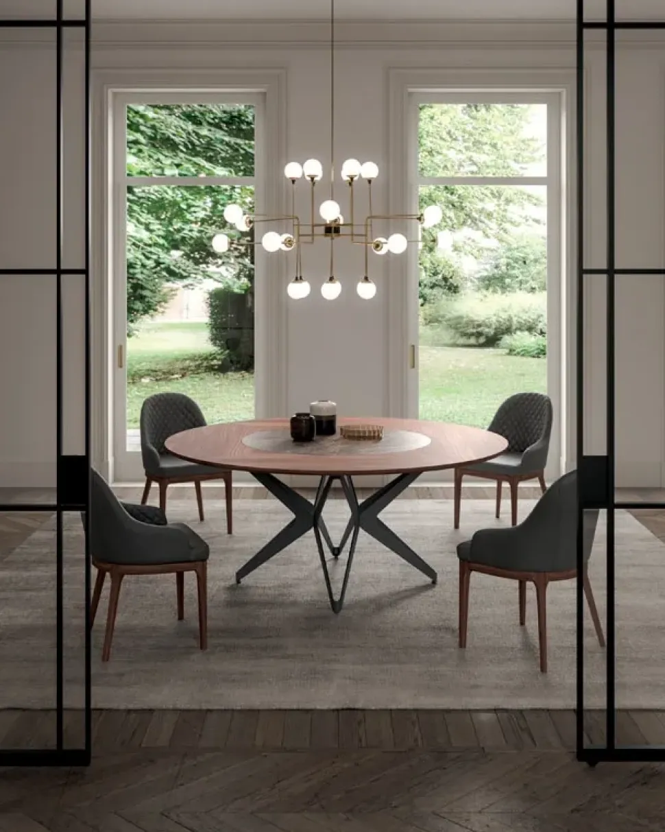 - Una struttura a quattro gambe ultima l’estetica del tavolo Rotondo qui visibile, che si confermerà così presenza caratterizzante del living o della cucina in cui sarà collocato, grazie alla sua figura dall’estetica raffinata.