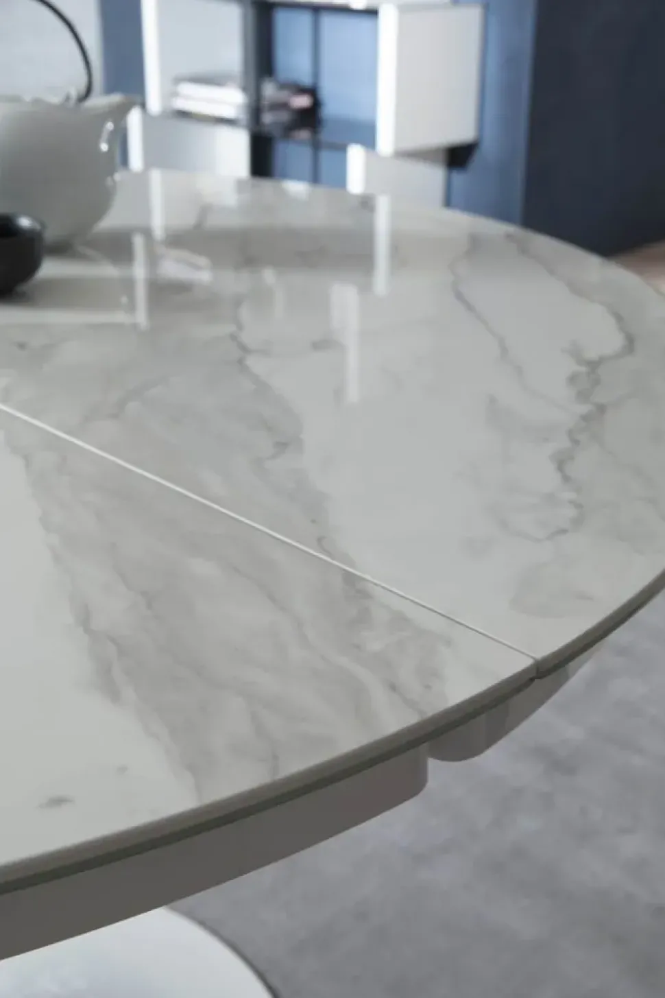 - Una struttura con basamento centrale ultima l’estetica del tavolo Rotondo qui disponibile, che si confermerà in tal modo protagonista del living o della cucina dove è collocato, grazie alla sua figura di gran classe.