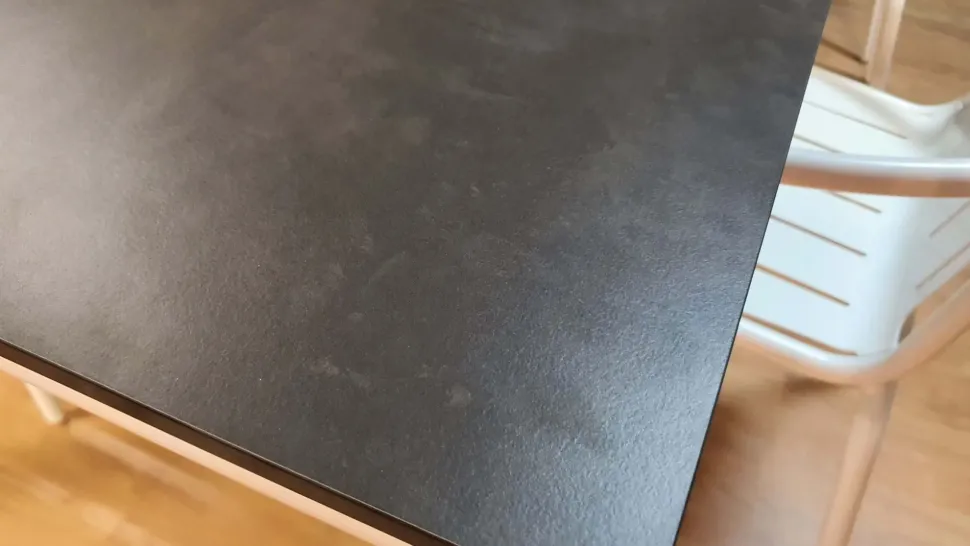 Il tavolo è stato studiato appositamente per il giardino in quanto i materiali impiegati sono idrorepellenti.