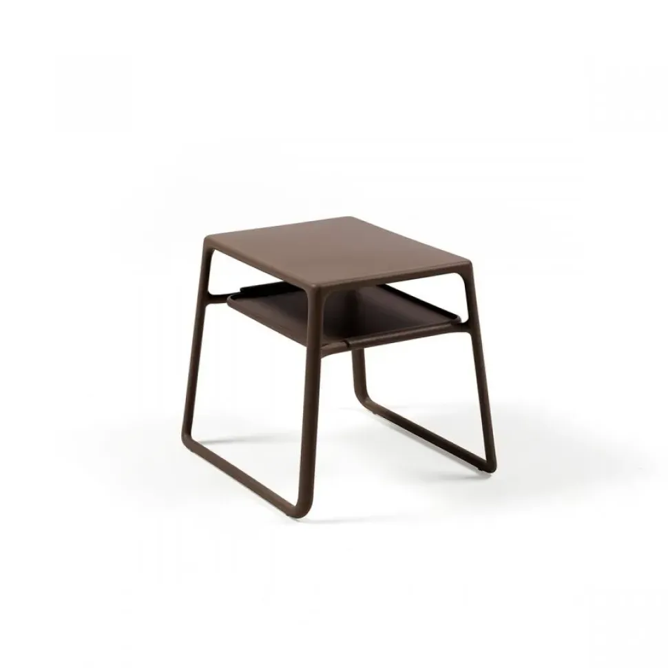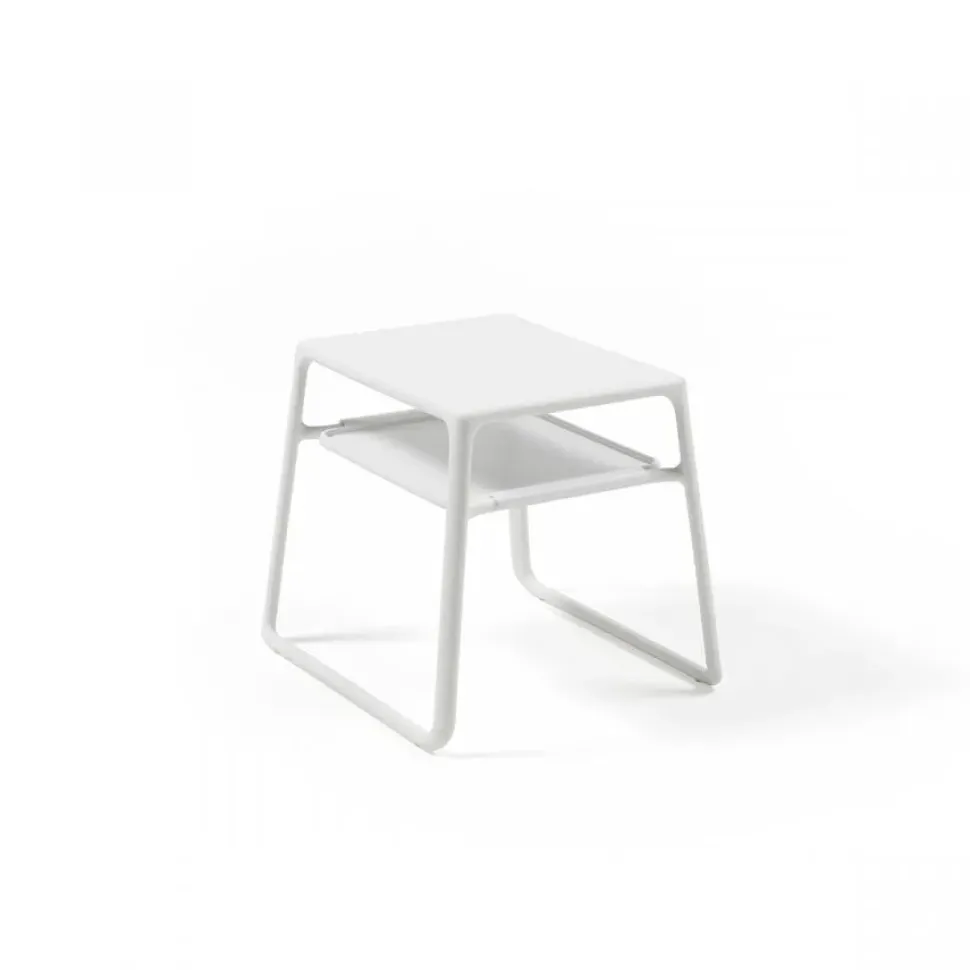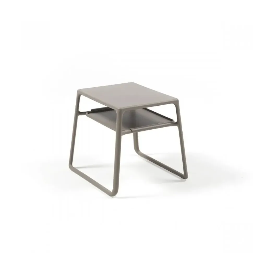 Tavolo basso con vassoio. Polipropilene fiberglass trattato anti-UV e colorato in massa. Finitura opaca. Dotato di piedini antiscivolo. Resina riciclabile.Finitura matt. cod. 40048 Misure: Larghezza cm 44, Profondità cm 39,5, Altezza cm 38,5 Peso kg 1,5 Disponibilità, da verificare, in diverse colorazioni: bianco, antracite, tortora, caffè