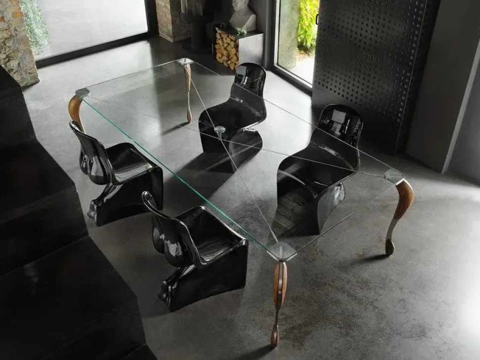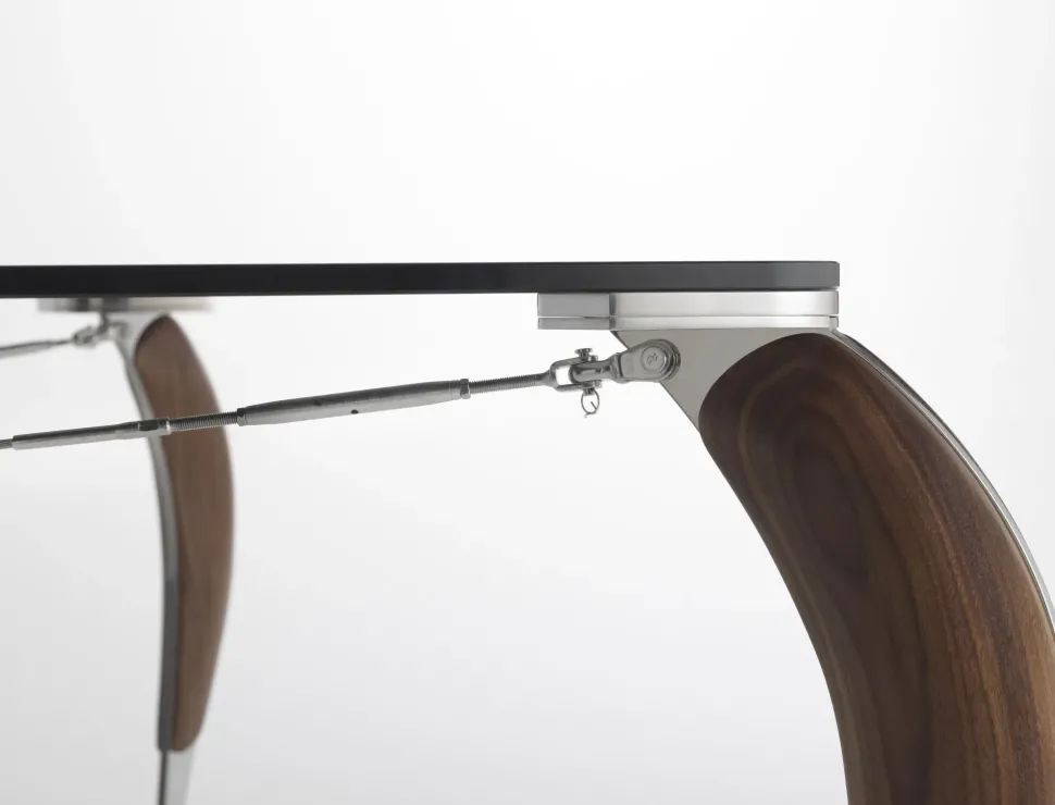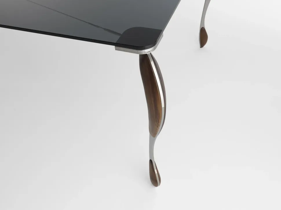 Le gambe sono realizzate in acciaio tagliato a laser con applicate delle guance in noce canaletto massello.