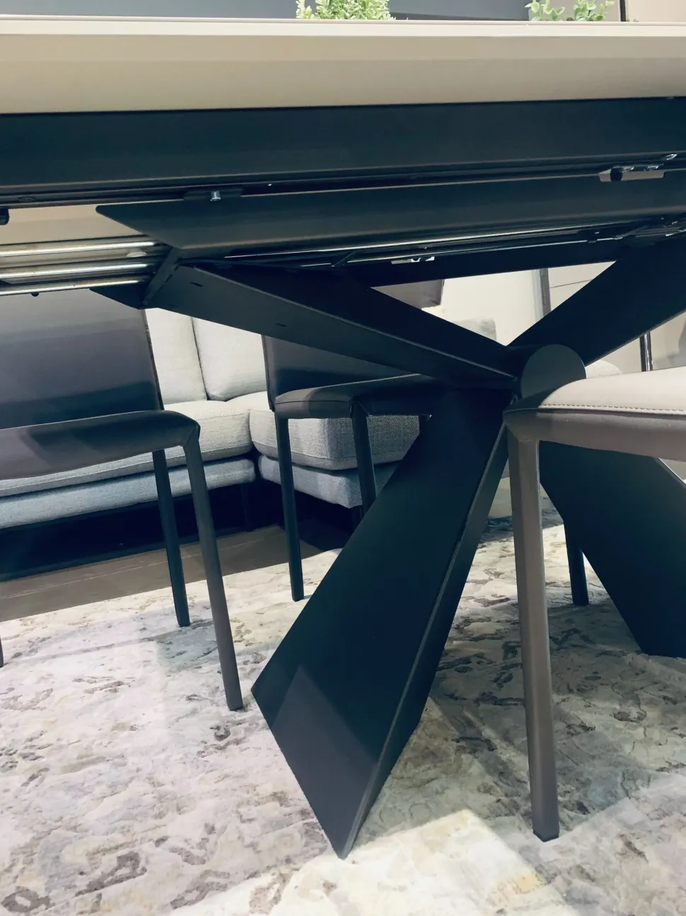 Il tavolo Sintesi di Altacom è dotato di un meccanismo unico, che consente in pochi e semplici gesti, di aprirlo permettendovi di allungarlo e allargarlo in pochi secondi.