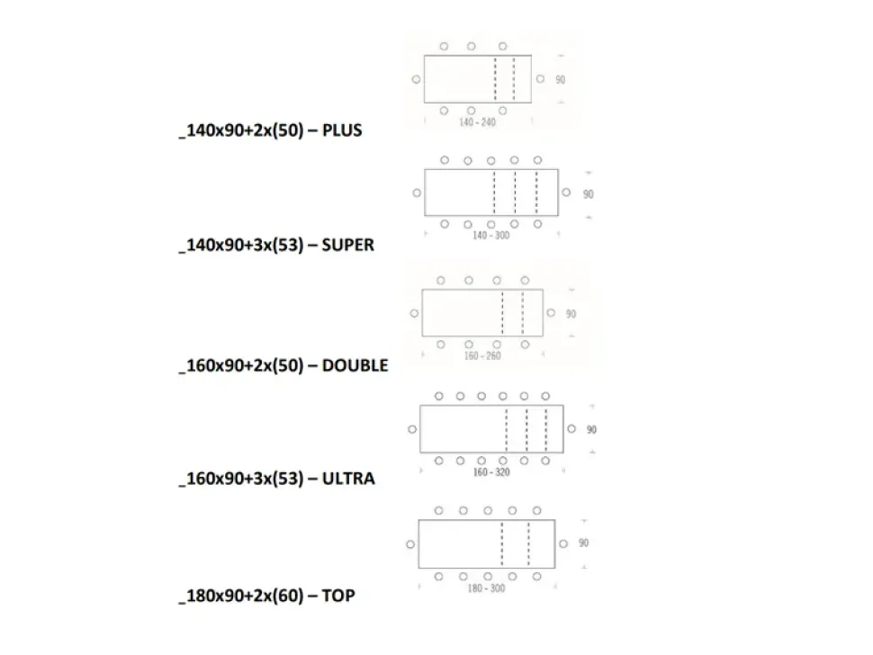 Dimensioni 160 X 90 allungabile fino a 260 cm