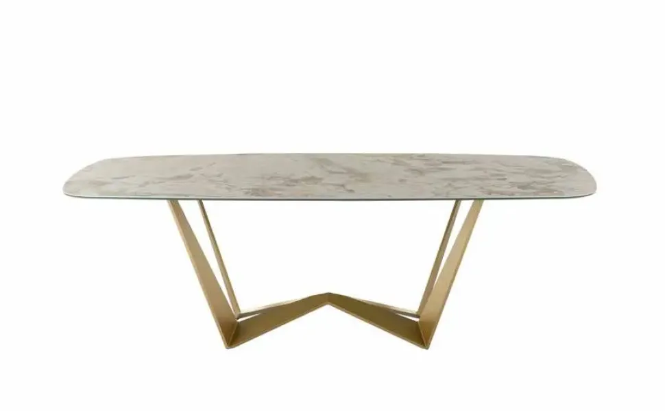 - Design unico ed un risultato estetico di grande personalità contraddistinguono la struttura con basamento centrale del tavolo qui visibile: nel complesso, la resa estetica del modello Reverse glass Tonin casa non ti deluderà.