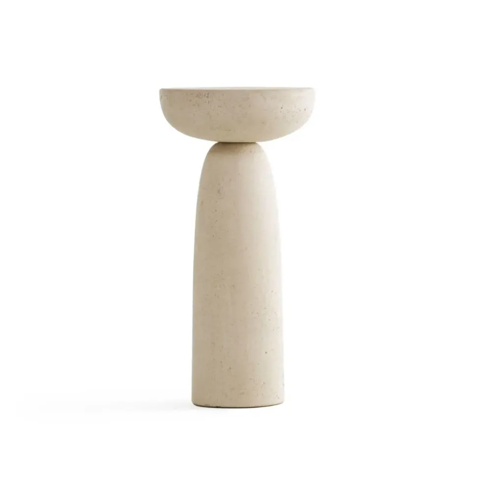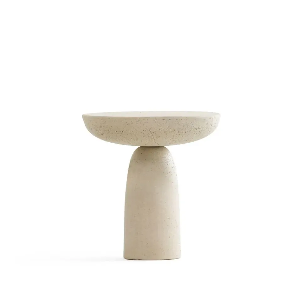 Il tavolino Olo è realizzato in cemento con finitura a cera ed è disponibile in due colori e quattro modelli che misurano rispettivamente (Ø x H):