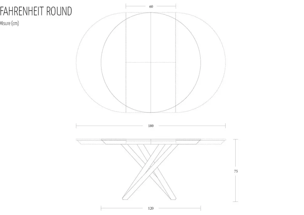 - Tipologia rotondi allungabili: Il tavolo Fahrenheit round offre la possibilità di allungarsi da 131 a 160 cm, permettendo di adattarsi alle diverse esigenze di spazio.