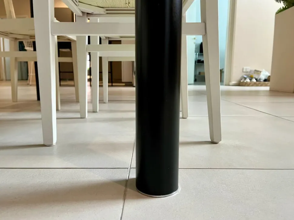 Il tavolo presenta un piccolo segno superficiale di circa 3 cm sul piano, visibile solo se osservato controluce o con una fonte luminosa diretta e ravvicinata (ad esempio una torcia). Si tratta di un dettaglio pressoché impercettibile in condizioni di luce normale, che non altera in alcun modo l’estetica complessiva né la funzionalità del tavolo. Proprio per la presenza di questo piccolo graffio, il tavolo è proposto con un importante sconto del 50%.