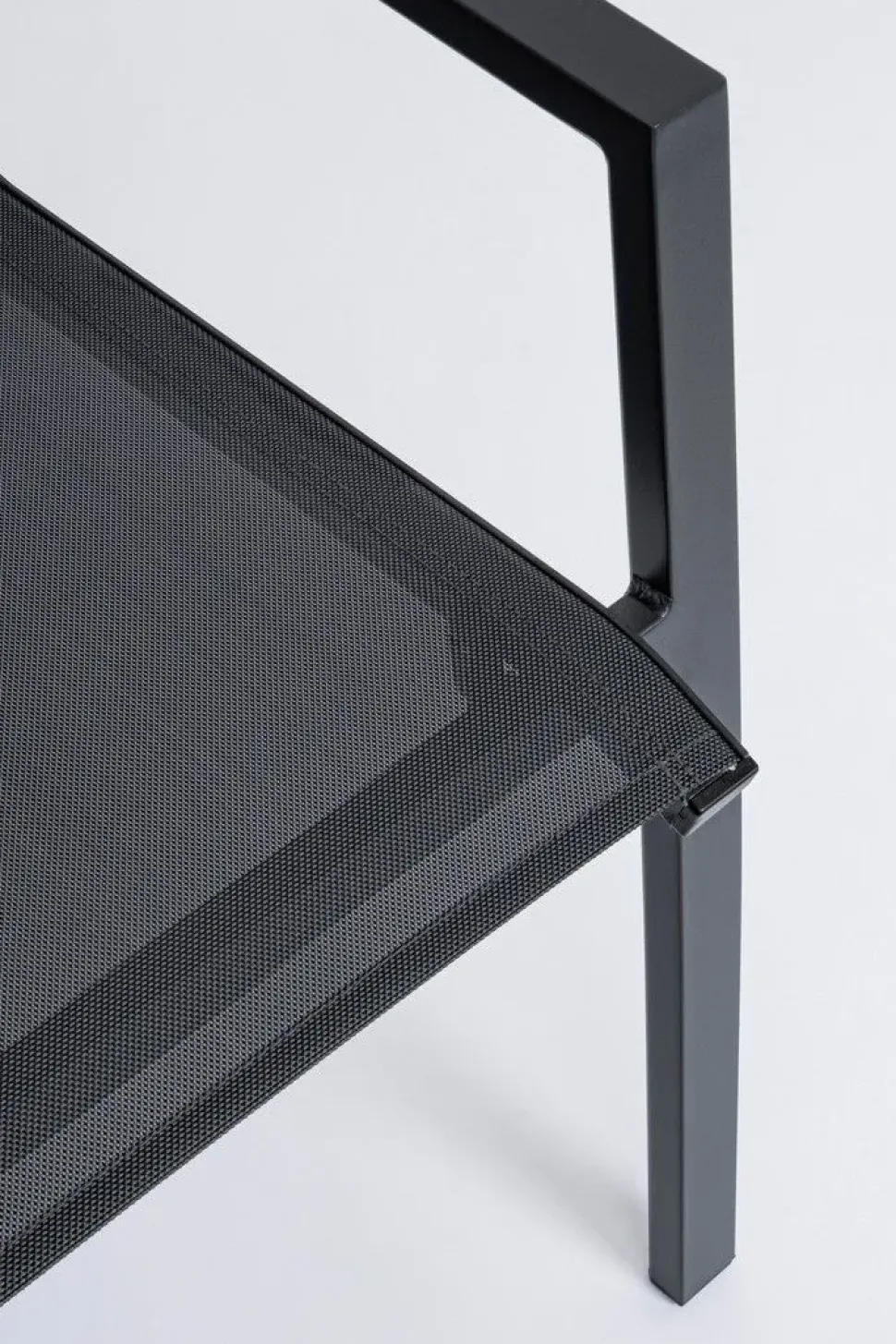 STRUTTURA IN ALLUMINIO VERNICIATA A POLVERE (POLIESTERE). RIVESTIMENTO IN TEXTILENE 1X1. IMPILABILE.