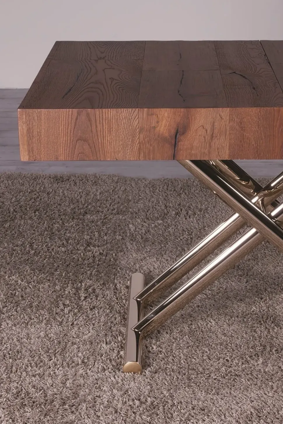 Tavolino 80×120 cm trasformabile in tavolo da pranzo con meccanismo a gas regolabile in altezza al millimetro da 28 cm a 88 cm.