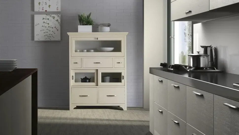 Le vetrinette a marchio Artigianale sanno arricchire un soggiorno d’epoca o moderno definendo gli spazi e usufruendo al meglio di ogni angolo. ll modello Dispensa con ribalta ed ante scorrevoli scontata del 35% ti permetterà di ultimare il tuo concept d’arredo risolvendo le tue necessità di stile e spazio.