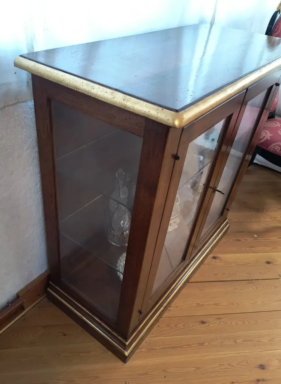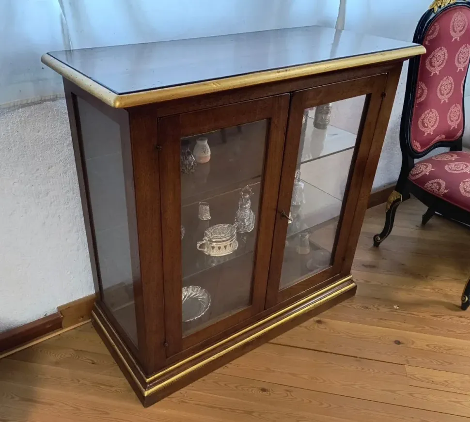 Perfetta per esporre oggetti, stoviglie, libri o collezioni preziose, questa vetrinetta unisce funzionalità e pregio estetico, diventando un pezzo unico e distintivo nella tua casa.