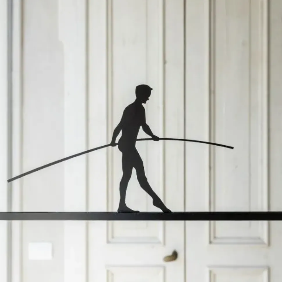 Lampada a sospensione in metallo di colore nero costituita da barra led da cm 150. Luce led 26,5 Watt 3300 lumen colore luce 3000K luce calda-naturale Completa di cavo, di alimentazione e rosone a soffitto in acciaio cromato. Sistema illuminante di particolare design con profilo led ed elemento decorativo figura funambolo. Indicato per illuminare sopra il tavolo e utilizzabile anche in coppia. Disponibile in expo. dimensioni cm 150 x 20 H mc. 0,01 – Kg. 4