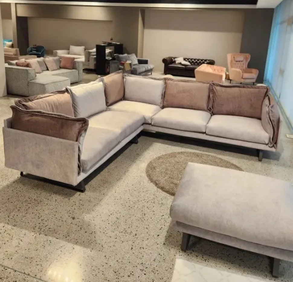 STRUTTURA IN LEGNO MASSELLO E MULTISTRATO, PIEDINO A SLITTA, DIVANO COME FOTO MISURA 285 CM X 295 CM