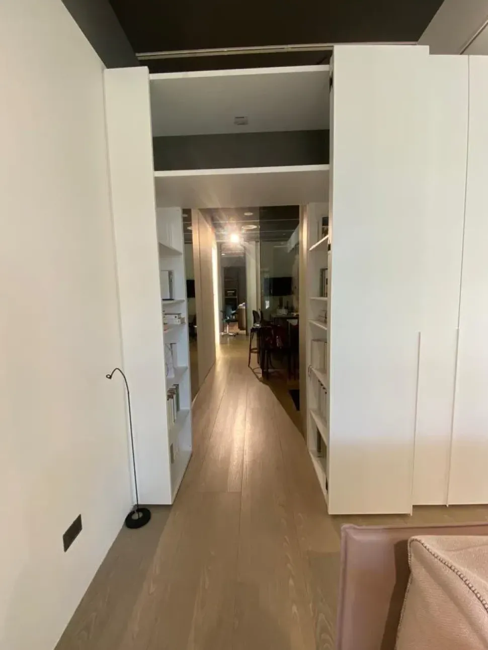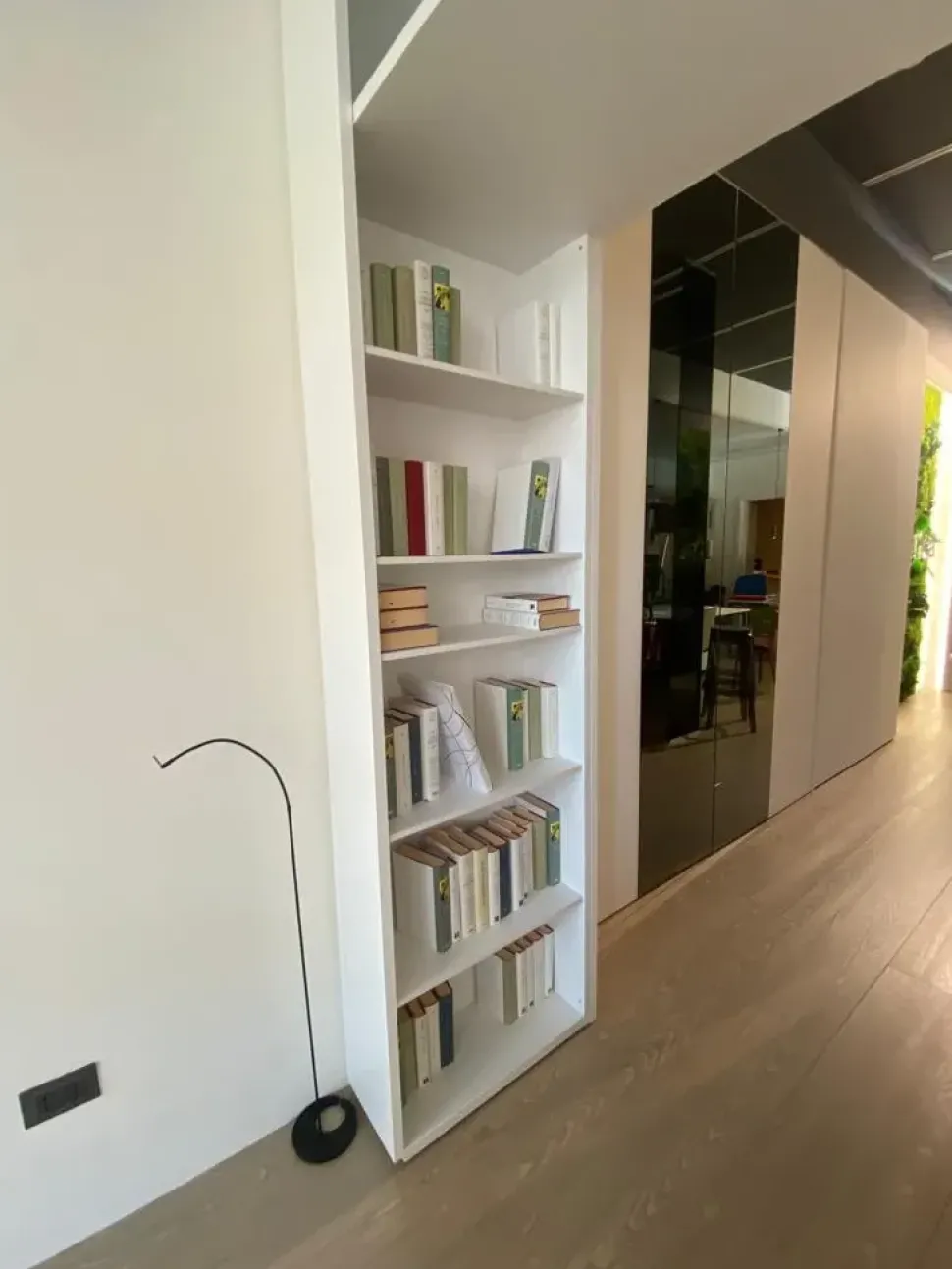 molto elegante, elaborata tecnicamente nei minimi particolari, sfrutta ogni possibile spazio. Dotata di una porta di passaggio. completa di librerie, vetrine illuminate ed i accessor intelligenti e funzionali.