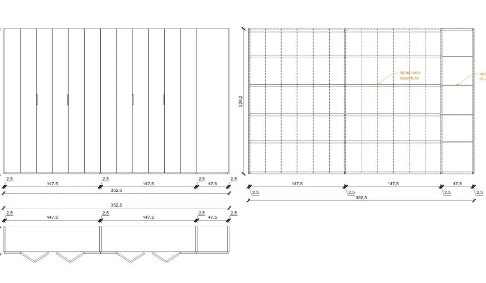 - Per valorizzare il tuo spazio in una moltitudine di realizzazioni possibili, scegli la soluzione che meglio si adatta alle dimensioni di cui disponi: il modello qui presente va oltre 301 cm in larghezza e saprà di certo garantirti ampio spazio per i tuoi vestiti e gioielli. Ad ogni modo, contatta i nostri consulenti d’arredo se desideri sondare la possibilità di apportare delle modifiche realizzabili su misura al modello base.