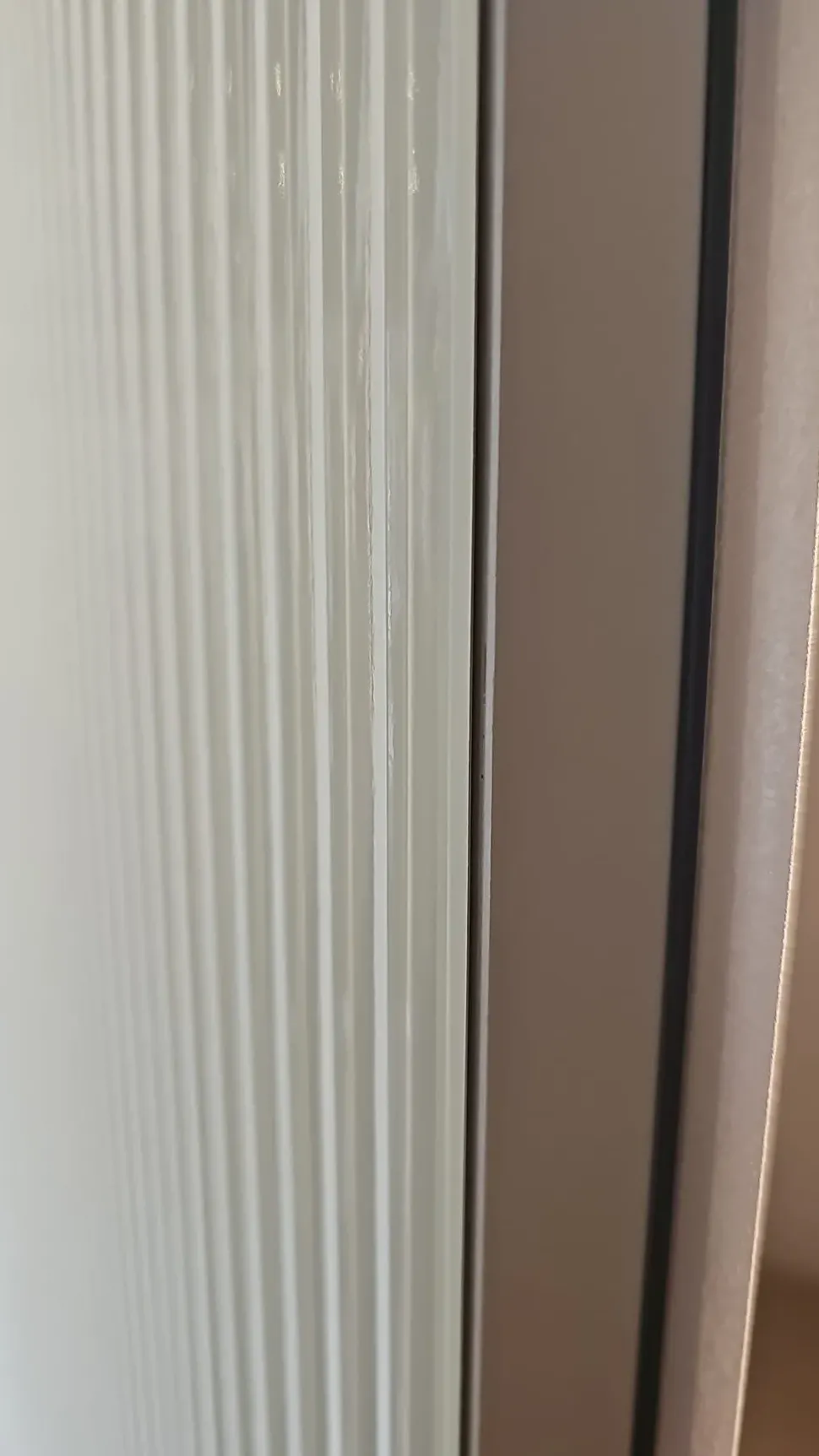 Armadio ROW adok vetro, dotato di colonna trucco, con ante in vetro cannettato color fango.