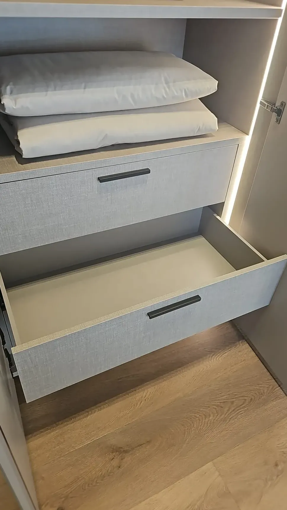 Se vuoi ottimizzare gli spazi confermando uno stile propriamente moderno nella tua zona notte, questo modello fa per te: forme decise, materiali durevoli e capienza esclusiva sono le caratteristiche che ne definiscono qualità ed estetica.