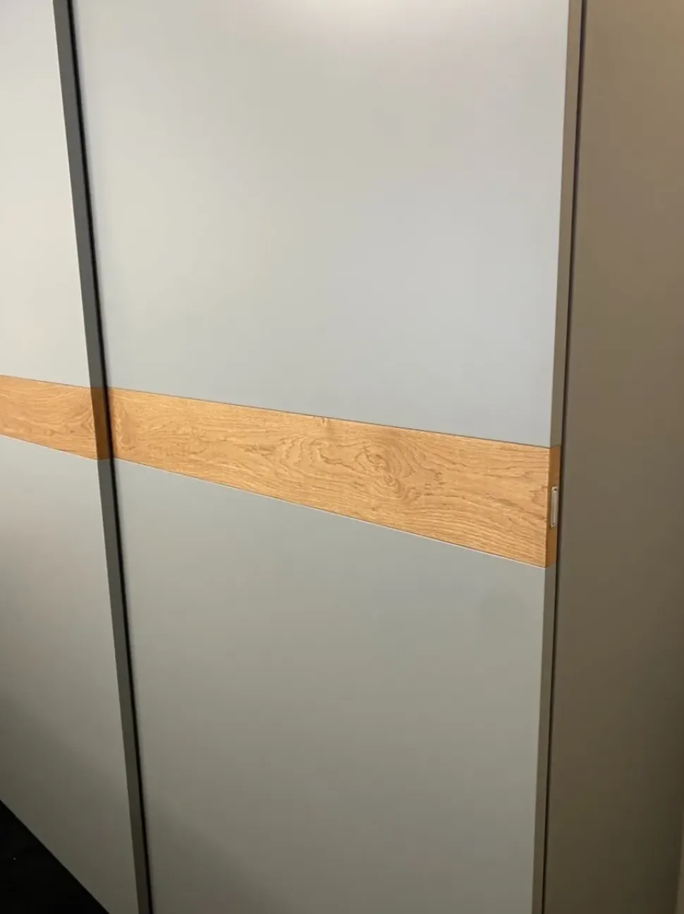 - Finitura esterna: Ante in laccato opaco color Polvere, con fascia centrale in finitura Old, per un design elegante e moderno.