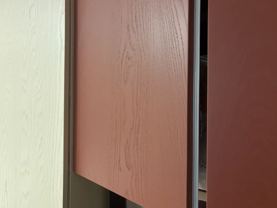 Finiture ante: frassino poro aperto prugna e caldochiaro.