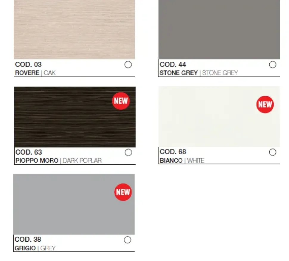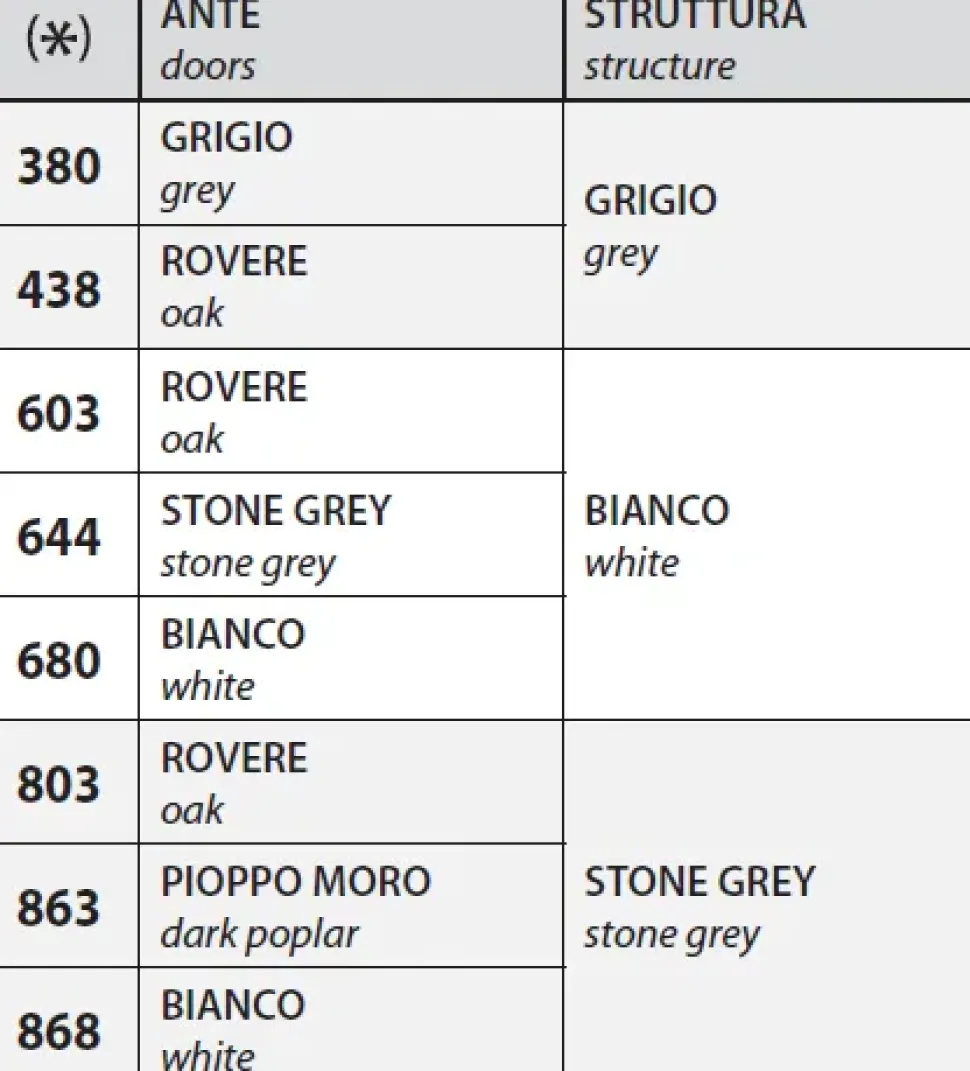 Colori disponibili Struttura: STONE GREY in abbinamento ad ante: BIANCO, PIOPPO MORO, ROVERE.
