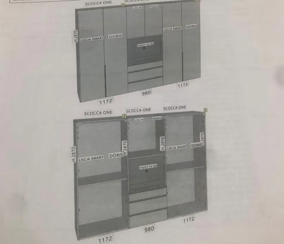 Se vuoi avere sempre disponibile un ampio spazio per porre i tuoi capi d’abbigliamento nella tua zona notte, non dimenticare di valutare anche l’altezza dell’armadio che fa per te. Il modello qui visibile va oltre 266 cm in altezza: chiedi assistenza ai nostri professionisti d’arredo per assicurarti che sia l’armadio ideale per te, senza impegno, o chiedi se è possibile apportare modifiche realizzabili su misura al modello base.