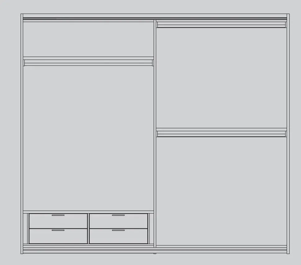 Se vuoi avere sempre disponibile uno spazio molto ampio per organizzare i tuoi vestiti nella tua camera da letto, non dimenticare di valutare anche l’altezza dell’armadio che fa per te. Il modello qui visibile va da 231 a 265 cm in altezza: chiedi assistenza ai nostri store manager del settore arredamento per assicurarti che sia l’armadio ideale per te, senza impegno, oppure chiedi se è possibile apportare modifiche realizzabili su misura per te al modello base.