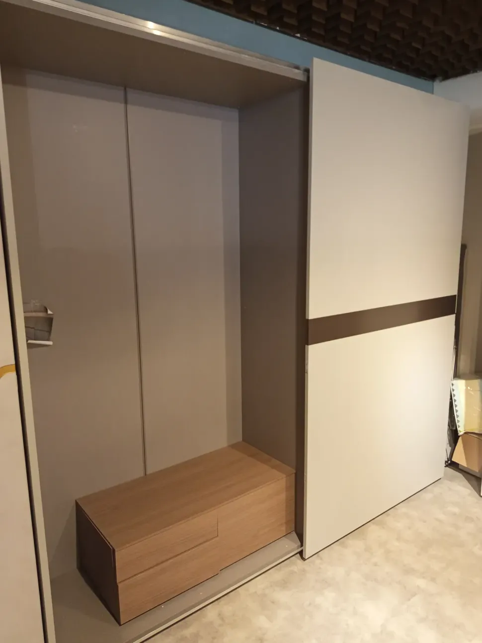 Armadio scorrevole Maronese Mod. Furios. Laccato opaco Grigio e inserto laccato metallizzato Bronze. Pezzo unico. L278 H255 P66.