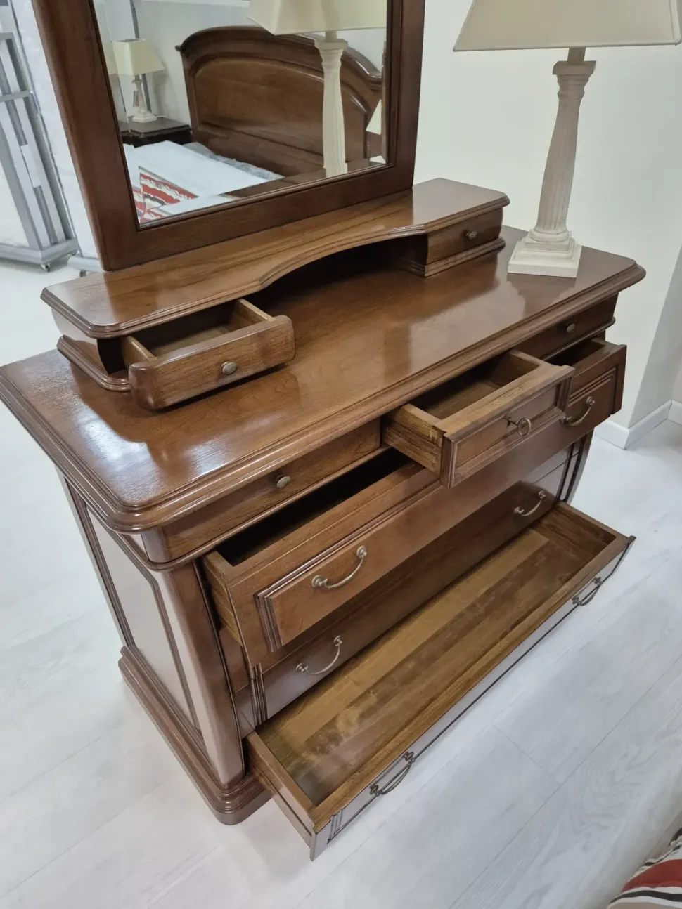 Per il modello Camera da letto, il brand ha scelto un materiale di alta qualità: il modello qui presente è costruito in legno, perfetto per ultimare dal punto di vista estetico una camera da letto di ogni stile assicurandoti, contemporaneamente, di avere più di un piano d’appoggio plurifunzionale e sempre a disposizione; questo materiale dall’estetica raffinata sarà capace di impreziosire la tua zona notte seguendo il tuo gusto personale e conservando nel tempo le doti pratiche ed estetiche distintive.