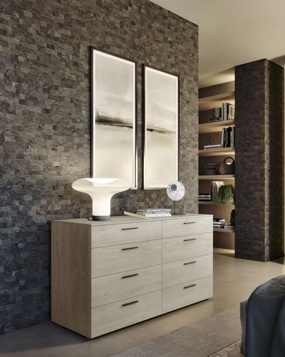 È imprescindibile tenere a mente i materiali con cui i mobili deputati alla propria camera da letto sono stati realizzati, poiché anche da questo potrà dipendere la qualità del sonno; infatti il marchio ha selezionato un materiale tanto pregiato quanto durevole, ossia il laccato opaco, perfetto per connotare una precisa coerenza stilistica nella camera da letto, nonché garantirti tutto lo spazio e la contenitività di cui hai bisogno per rendere totalmente funzionale l’ambiente.