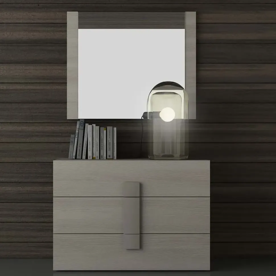 Giunta alla sua quarta edizione, questa collezione storica si arricchisce e si rinnova nella modellistica, per soddisfare i gusti dei clienti più esigenti. Proponiamo camera matrimoniale completa dal design elegante e funzionalità in finitura Olmo/Tortora. La camera dispone di letto matrimoniale Bologna con contenitore (l 169, p196, h87), spazioso armadio a sei ante battenti (l 250, p54, h240), un comò (l 106, p46, h75), due comodini (l 52,p37, h42) ed una specchiera oro. La finitura in essenza di olmo consente di adattarlo a qualsiasi stile di arredamento. Il comò, con struttura e maniglie in olmo, dispone di 4 ampi cassetti per un pratico stoccaggio. I comodini, con 2 cassetti ciascuno, riprendono lo stile del comò con maniglie poste centralmente. La finitura in olmo si armonizza perfettamente con il resto della composizione. L’armadio a 6 ante battenti completa la camera con lunghe maniglie in olmo che riprendono il design di letto, comò e comodini. L’allestimento di base dell’armadio include un ripiano e 2 tubi appendiabiti per vano, ma è possibile personalizzarlo aggiungendo altri ripiani o cassettiere secondo le esigenze. La specchiera è un’opzione aggiuntiva per arricchire ulteriormente la camera, aggiungendo un tocco di luce e spaziosità. Personalizzazione delle finiture senza variazione di prezzo. Consegna compresa nel prezzo, 30-40 giorni lavorativi. La nostra offerta per questa camera matrimoniale è di euro 2100,00. Per maggiori informazioni contattaci via mail o passa nel nostro showroom.