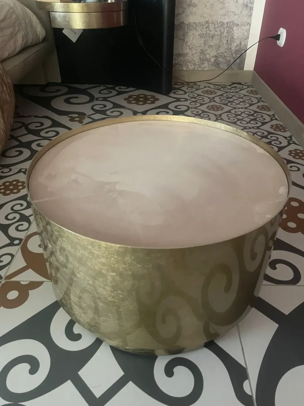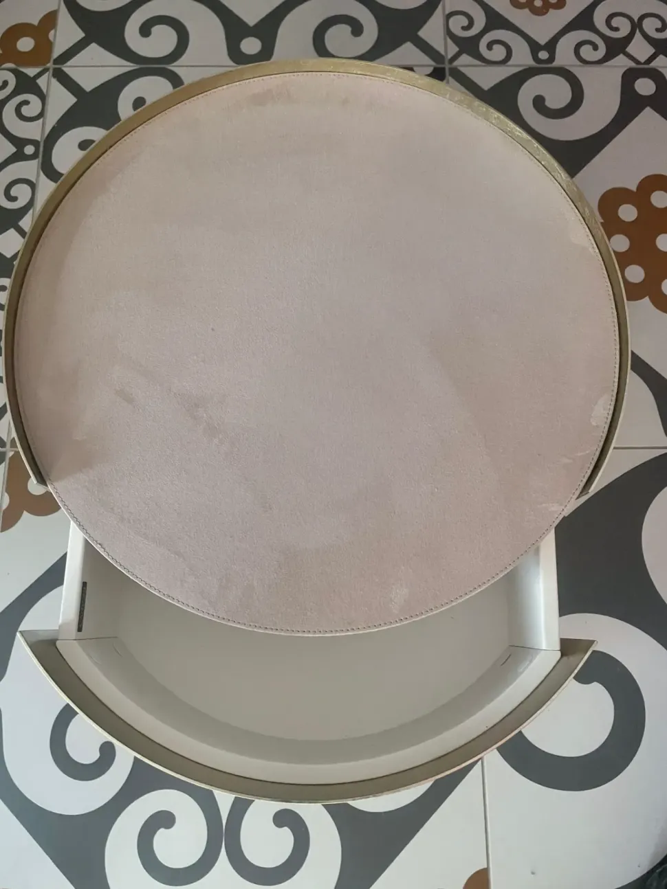 Il comodino Mirto dal disegno essenziale con struttura rotonda in metallo rivestito, è disponibile nella versione