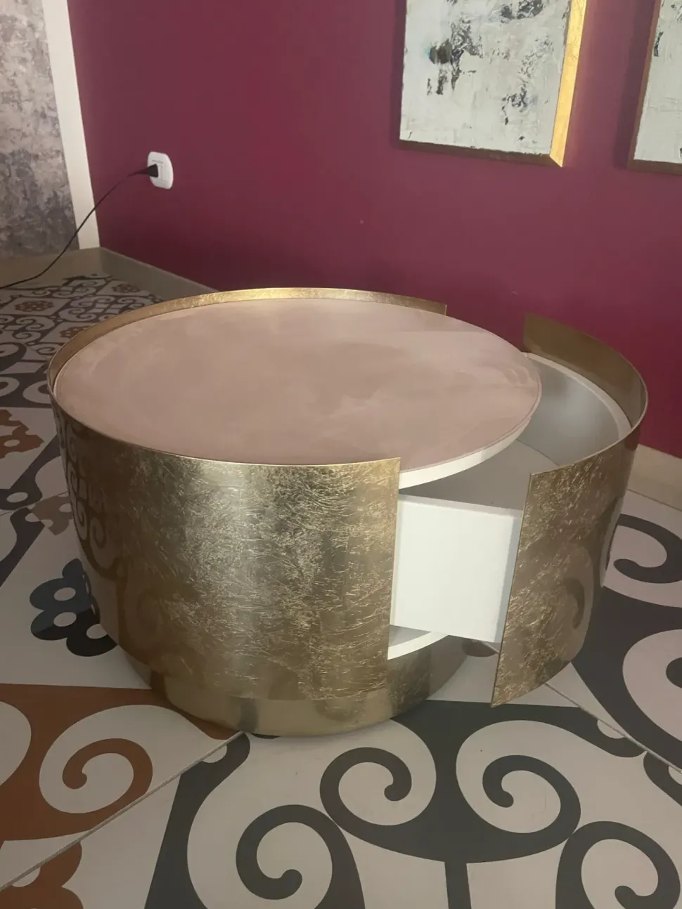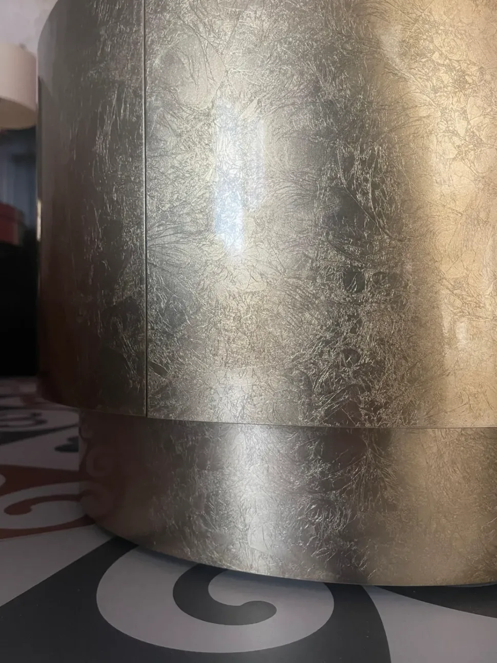 base foglia argento champagne con un cassetto a richiamo frenato e top in tessuto venezia mastice come foto.