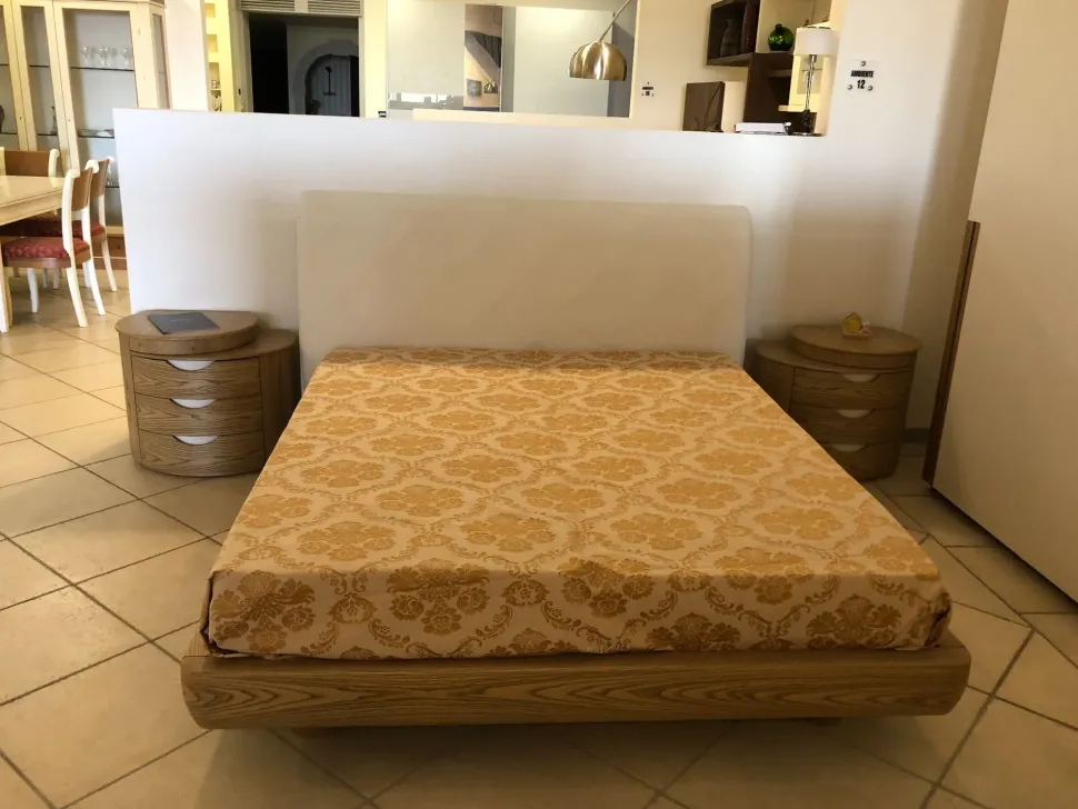 LETTO MARILYN IMBOTTITO : MISURE L185CM P223CM H109CM GIROLETTO H31CM / FINITURA LEGNO NATURAL WOOD- TESTATA PELLE EUROPEA BIANCA.