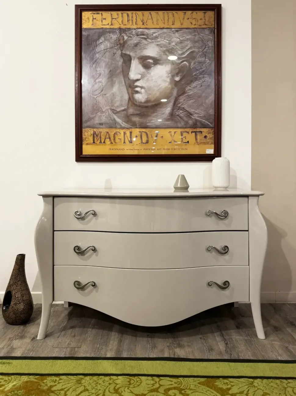 Il trittico Le Rose è un gruppo notte composto da 2 comodini e un comò si distingue per il suo stile classico ed elegante, caratterizzato da linee sinuose e dettagli raffinati. La finitura laccata lucida color orzo conferisce luminosità e un aspetto sofisticato, rendendolo ideale per ambienti dal gusto tradizionale e senza tempo. Il Comò è dotato di 3 cassetti spaziosi, offre ampio spazio per riporre biancheria, accessori o altri oggetti personali. I comodini hanno 2 cassetti ciascuno e sono perfetti per tenere a portata di mano gli oggetti essenziali. Il gruppo notte Le Rose di Imab si integra armoniosamente in camere da letto di diverse dimensioni e stili, aggiungendo un tocco di classe e funzionalità. La sua versatilità lo rende adatto sia per ambienti classico-moderni che per quelli più tradizionali.
