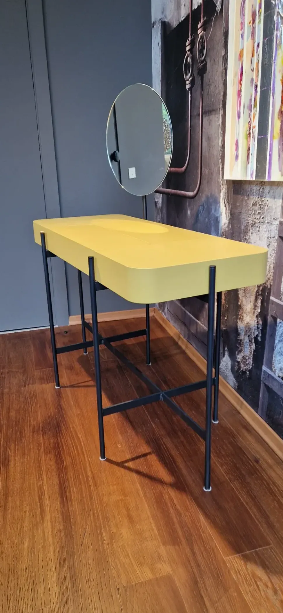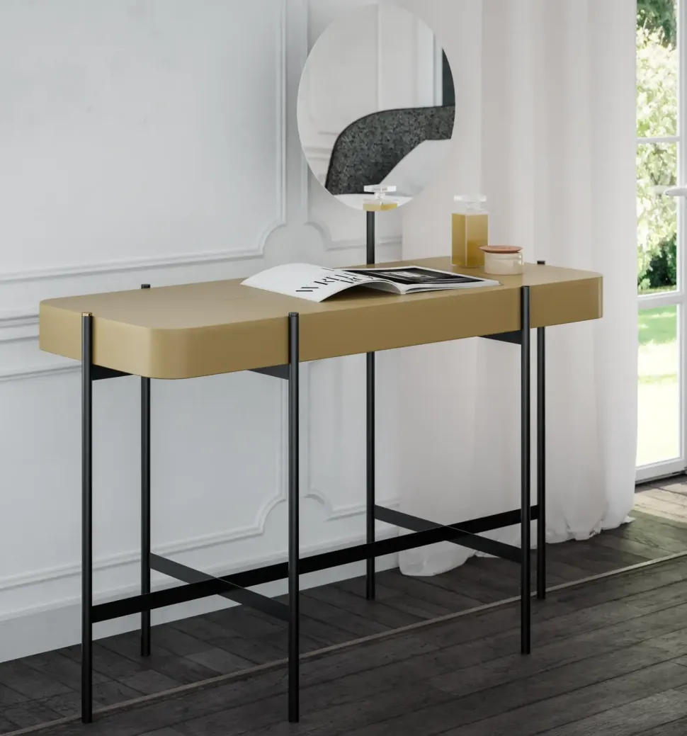 Il Make-Up Set Caillou di cm 124L x 76/135H x 53P rappresenta lessenza di un design moderno che fonde funzionalità e raffinatezza. Questo mobile non è solo un semplice complemento per la zona notte, ma un vero e proprio oggetto del desiderio per chiunque apprezzi lo stile e la praticità. Un elemento pop, trasformabile, che può essere utilizzato non solo come make-up set, ma anche come scrivania o consolle, rendendolo un pezzo versatile e ideale per ambienti contemporanei. La sua estetica unica, unita allelevata qualità dei materiali e allattenzione ai dettagli, lo rendono un pezzo essenziale in qualsiasi casa moderna. Versione in finizione laccato opaco Senape